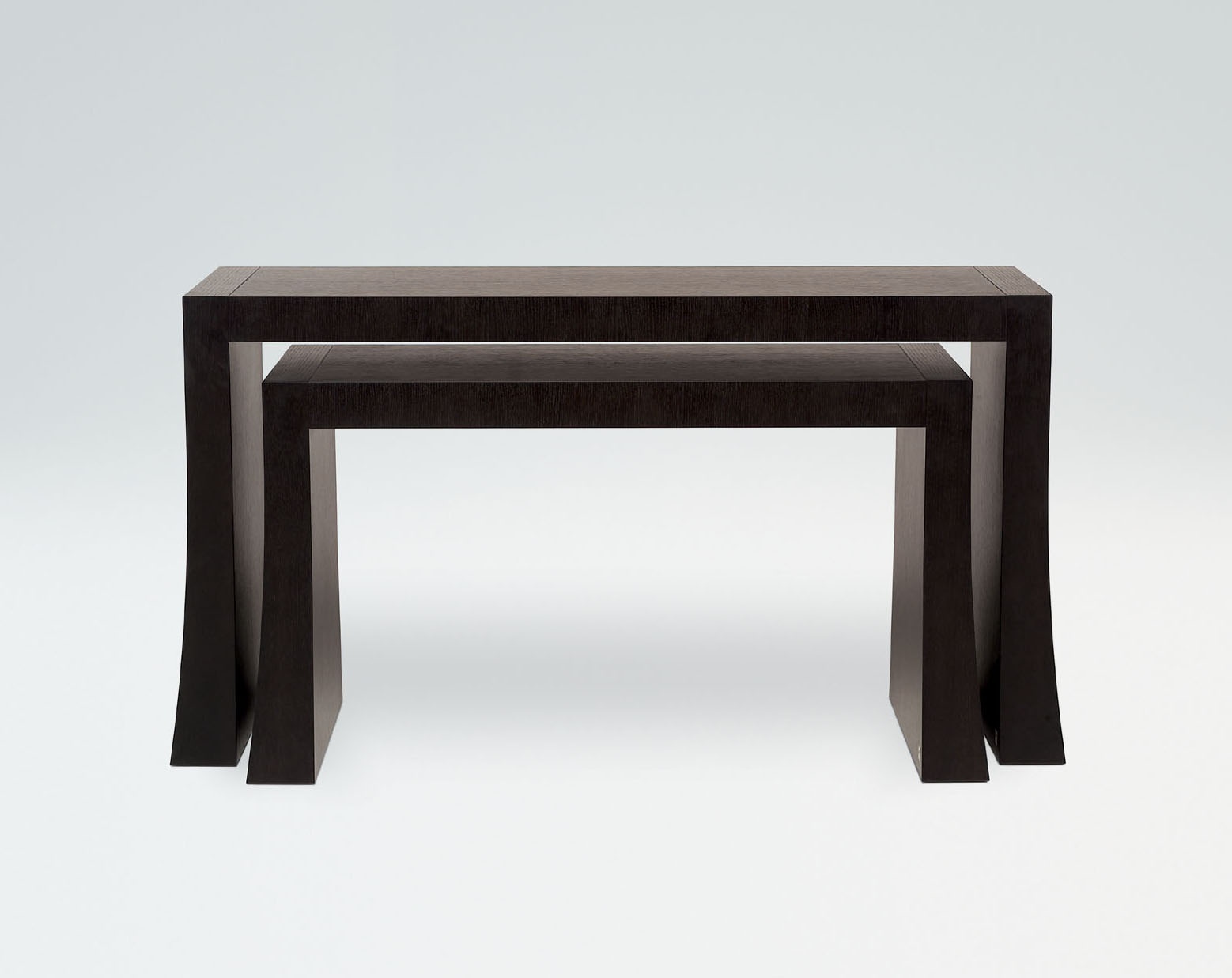 Console rectangular Rialto Italian manufacturer Armani Casa. The frame is made of wood. Color solution brown color or to choose from a catalog company. Consoles curved legs to the bottom. Presents two different heights. A modern solution for living room.