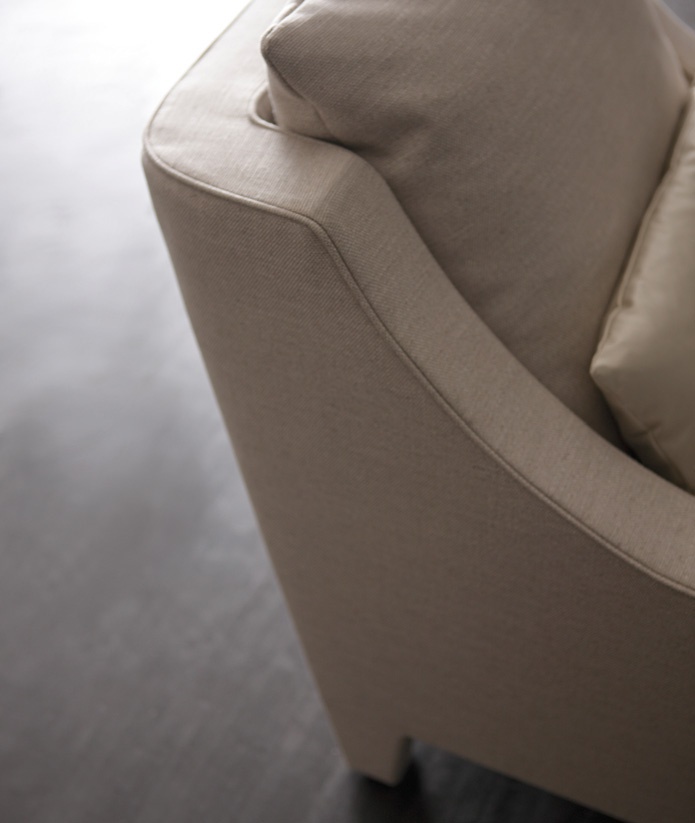 Rosalie loveseat from the Italian manufacturer Angelo Cappellini. Model with low arm rests on a frame of wood. Upholstery textile from the collection company. The seat cushion and backrest removable. Filler - fluff or foam. Complement the design of two decorative pillows.