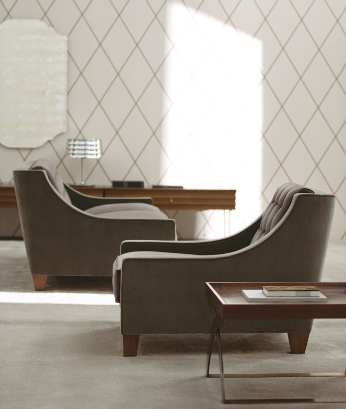 Double Classic Rosalie sofa from Italian manufacturer Angelo Cappellini. The model with square tufted back and low armrests. The frame is made from wood, completely covered with textile. Colors to choose from for the company directory. Filler - polyurethane foam. Designed in the art Deco style.