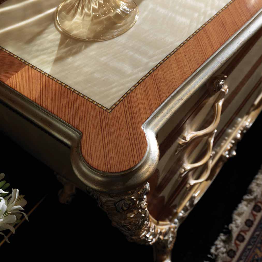 Headsets for bedrooms from Italian manufacturer Ezio Bellotti. Set includes double bed, chest of drawers, dressing table, armchair and bedside tables. The furniture is made of solid wood. Upholstery - textiles from a range of campaigns. Colours in stock.