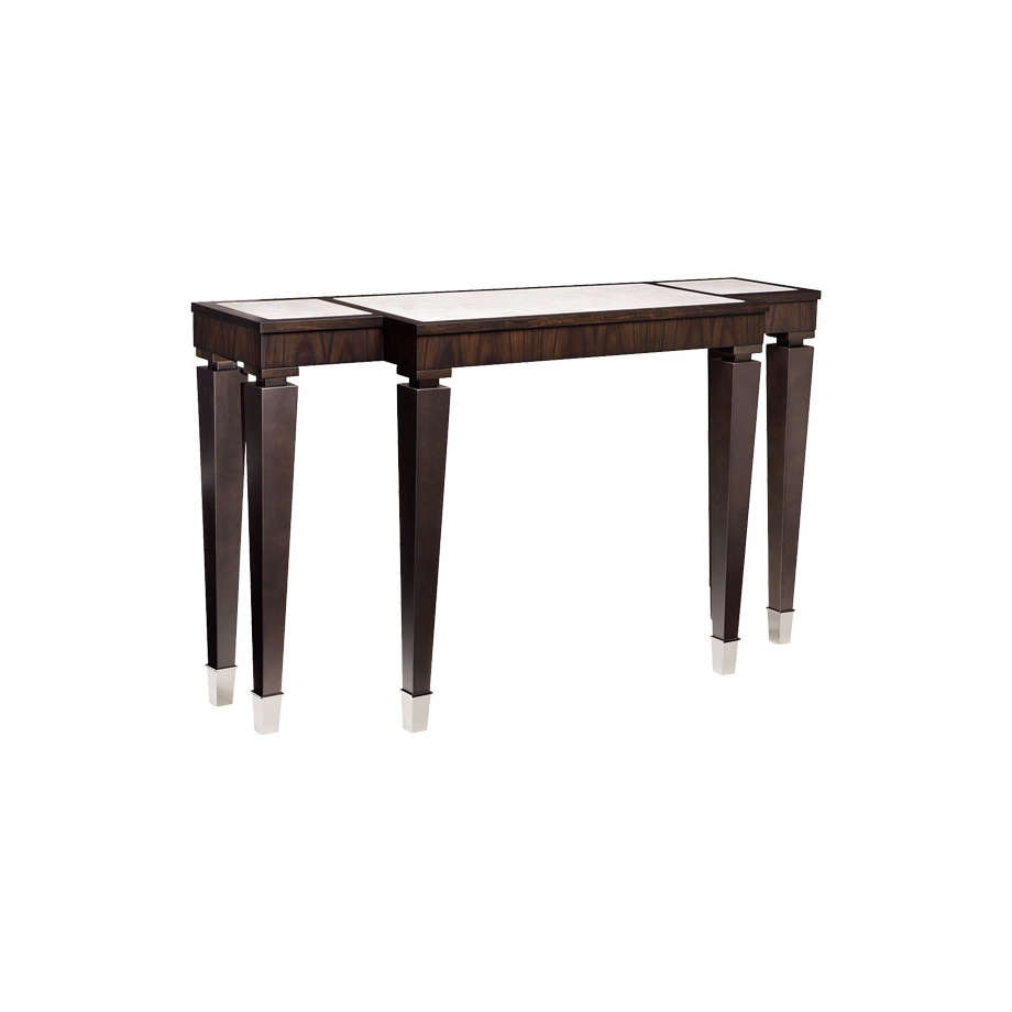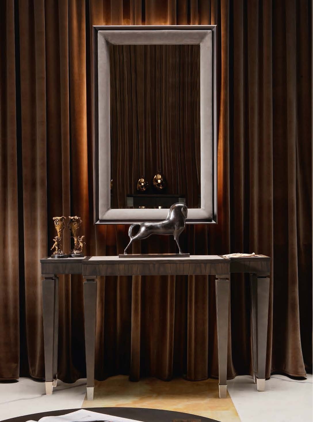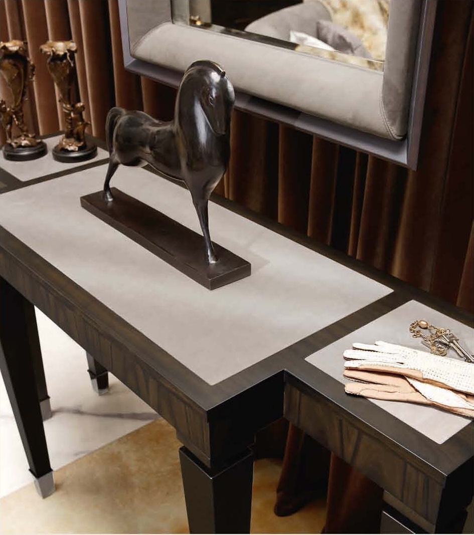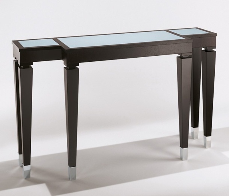 Console ASTERCONO from the Italian manufacturer Smania. The model is made in modern style. Table special design with a narrow top made of genuine leather, frame in painted beech wood, bits of legs of steel.