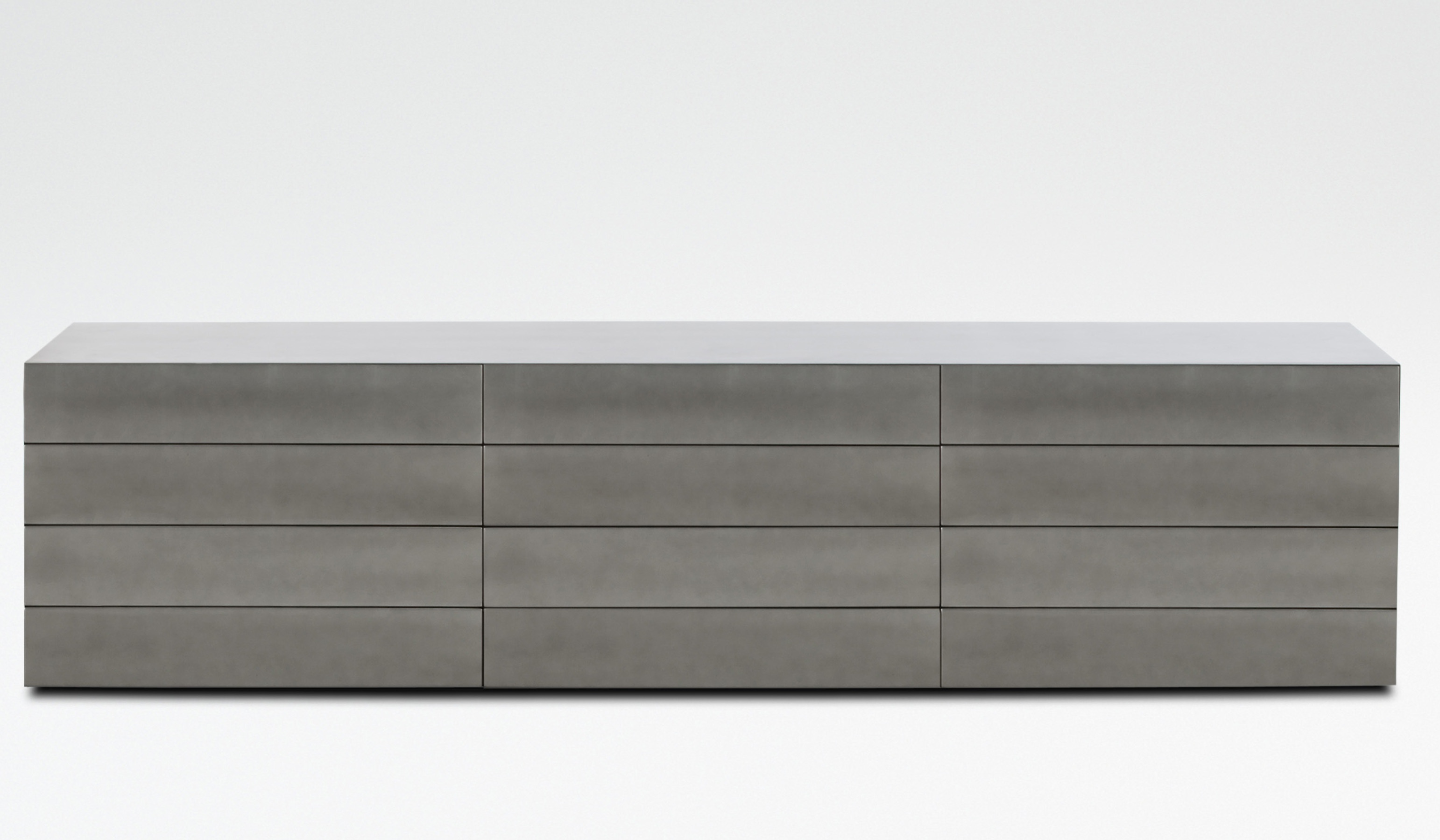 Stand of rectangular form Baudelaire Italian manufacturer Armani Casa. Presents a model with drawers. Color in a gray version. A modern solution for living room.