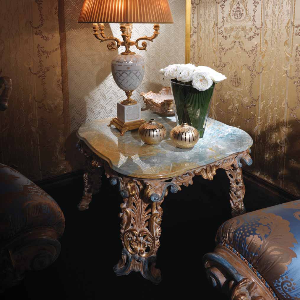 Sofa set from the Italian manufacturer Ezio Bellotti. Materials: natural wood, marble, textile. The design complements the rich d?cor carved elements are handmade, decorated with gold leaf. Colours in stock.