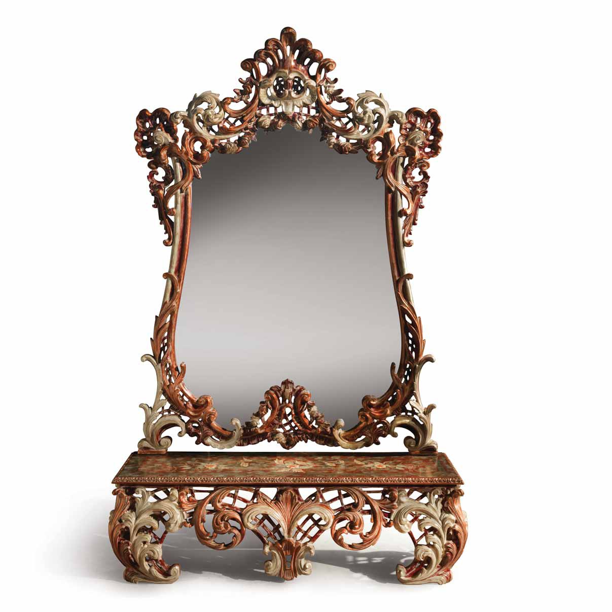 The console from the Italian manufacturer Ezio Bellotti. Material - natural wood, marble. The finish is lacquer, hand carved. Colours in stock.