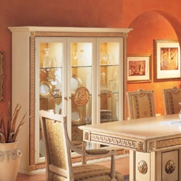 Showcase Miami from the Italian manufacturer Caspani Tino. The model is made in classic style. Dining Cabinet for storing utensils with glass display case. The frame is made of solid wood with elements of decorative thread.