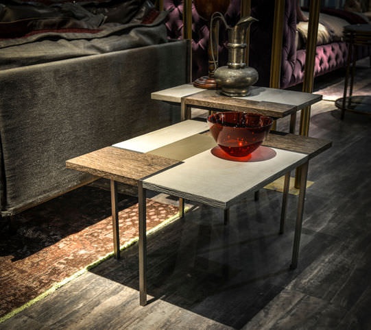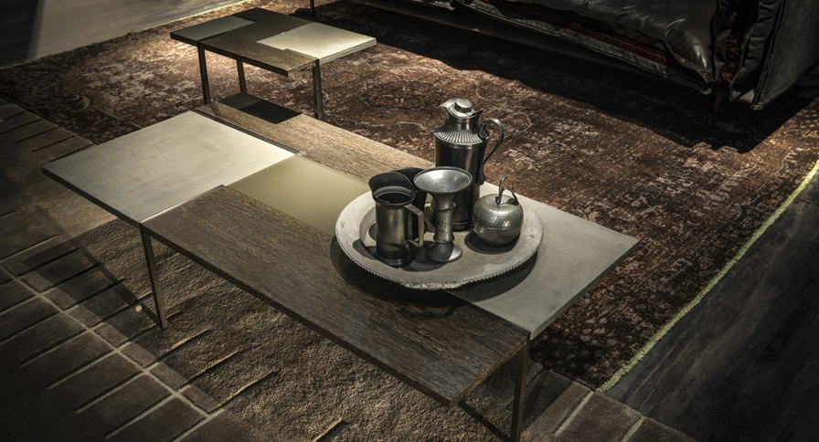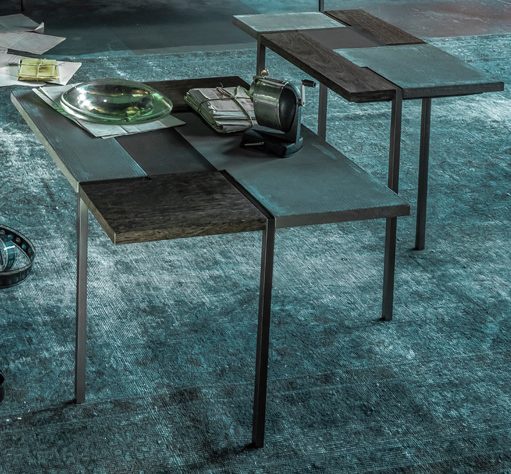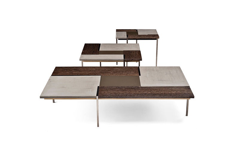 Stijl coffee table by Italian manufacturer Arketipo. Designer Giuseppe Vigano. The linearity and stiffness are the essence of Stijl models. Do not use colors and different materials such as glass, MDF and wood veneer, makes it extremely versatile. Square legs, made of painted metal bronze or titanium.