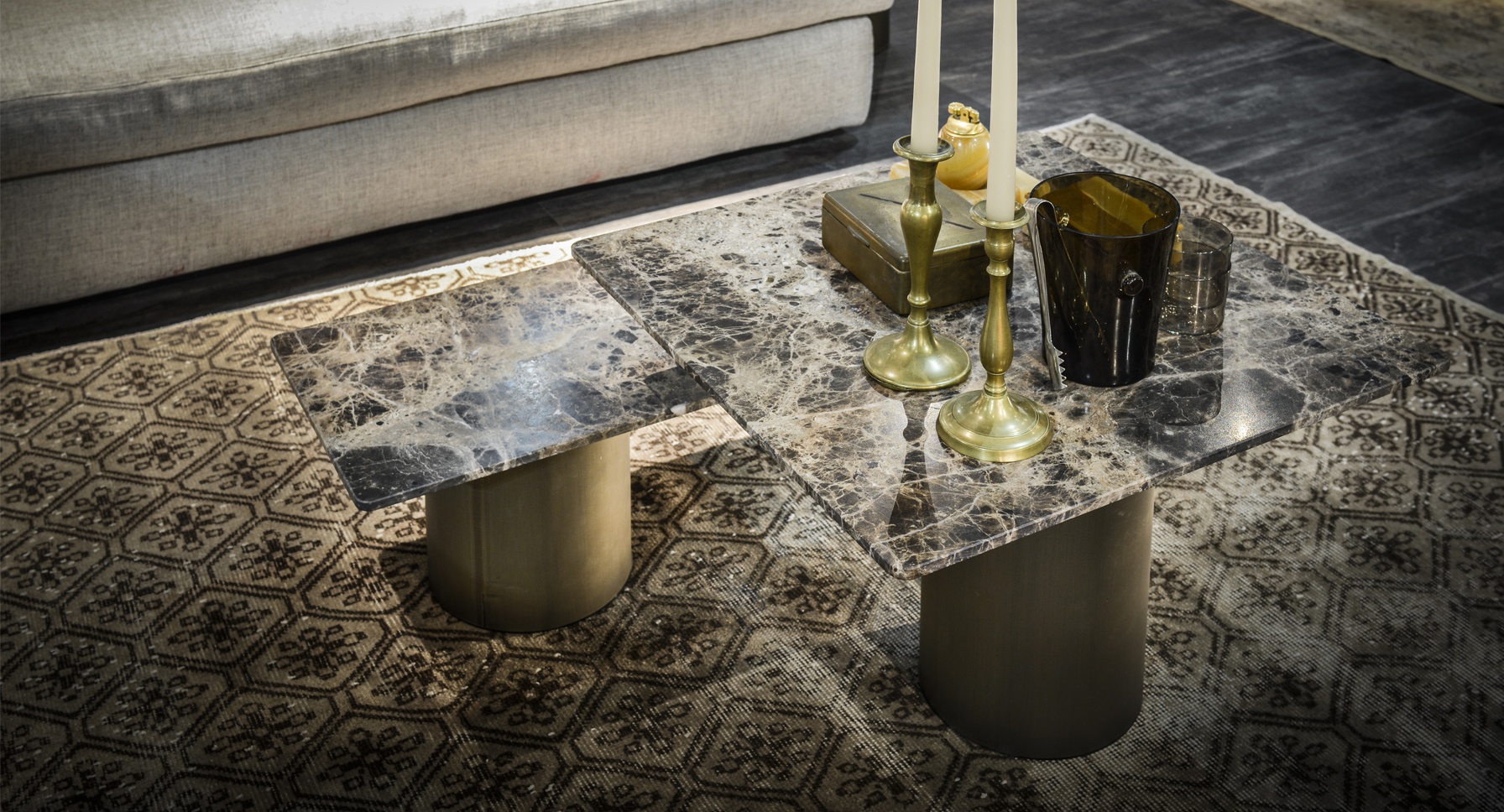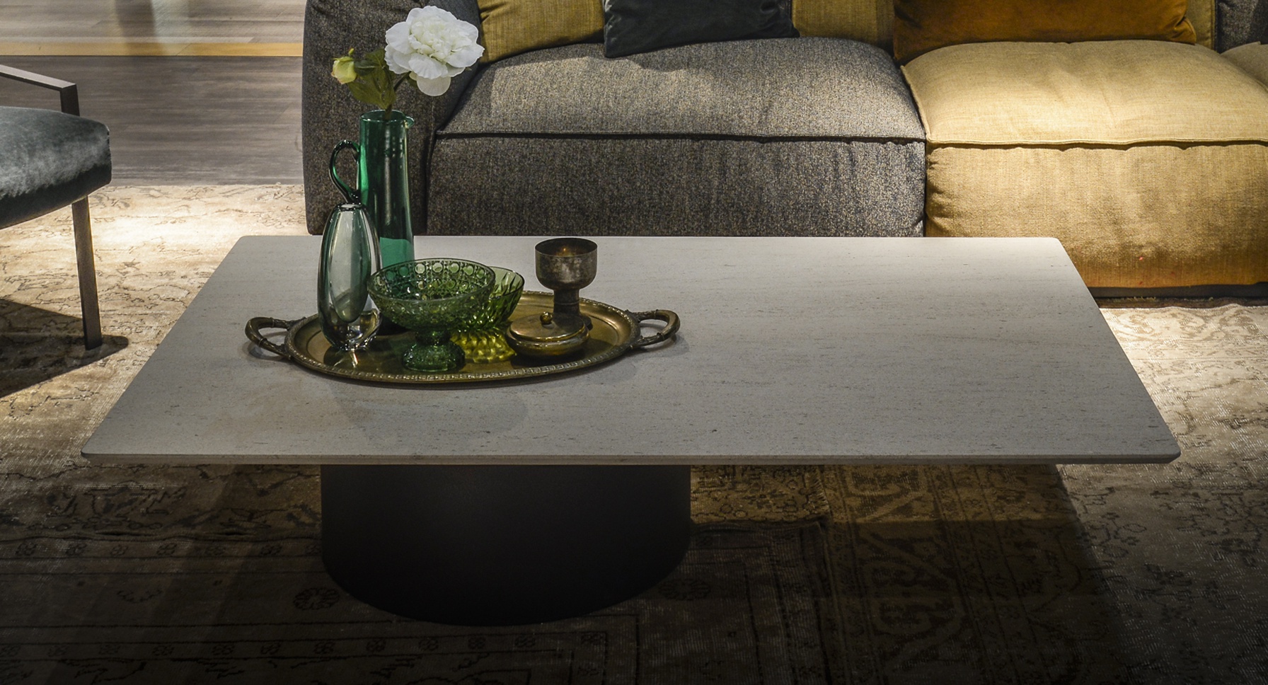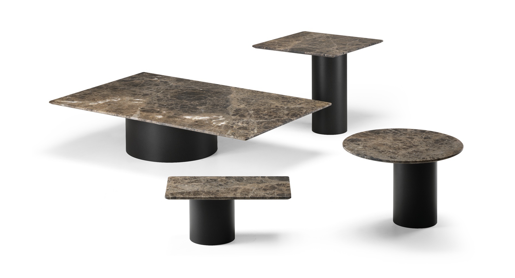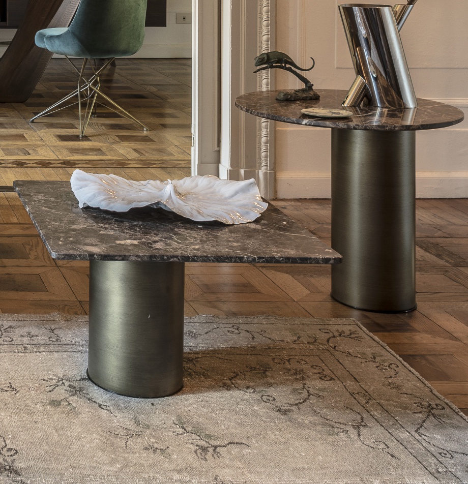 Petra coffee table from the Italian manufacturer Arketipo. Design by Bartoli. Petra tables were developed for use as individual items or in groups of several units. Different height to create the illusion of overlapping surfaces and unusual convergence of different geometric shapes. Cylinders, hoops, squares and rectangles allow you to create countless combinations of modern design.