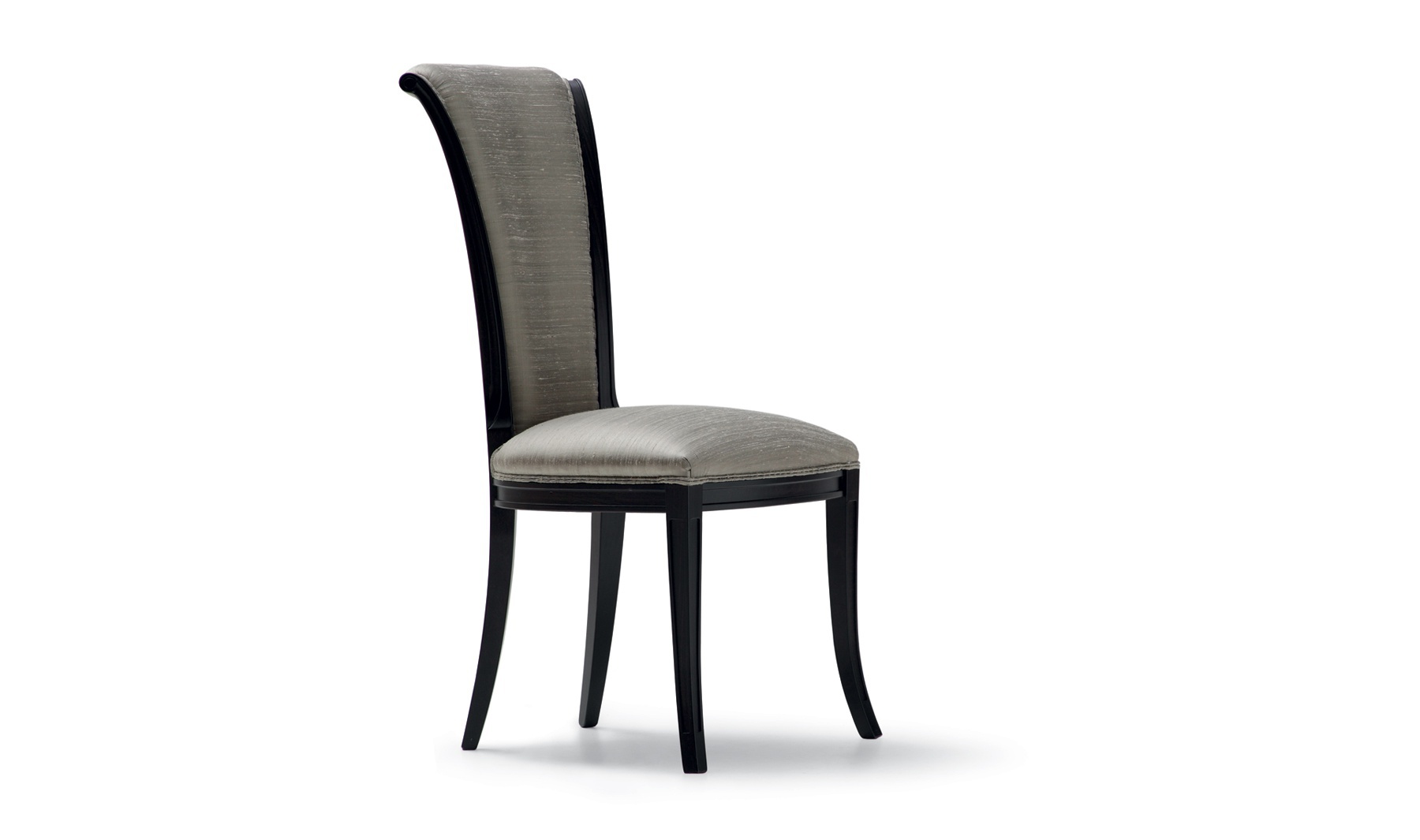 The Claude chair by Italian manufacturer Angelo Cappellini. The model without armrests with high back. Seat and back in the soft upholstery. The upholstery is available from textile or leather in stock. Chair in art Deco style, on the frame, made of wood.