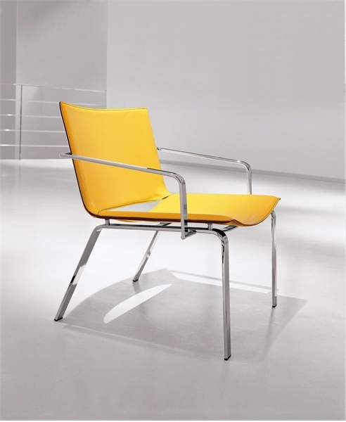 The Alberta armchair from Italian manufacturer Cattelan Italia. Chair frame is made from chromed steel and the upholstery is presented in the textile and leather version. The color of this model chair yellow.