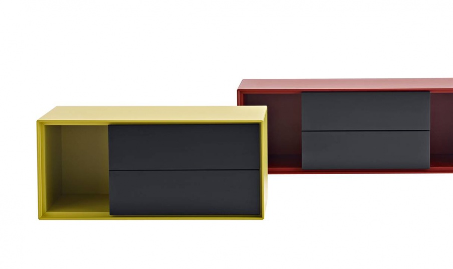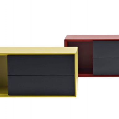Bedside table Dado from the Italian manufacturer B&B Italia. Custom design, Studio Kairos. Bright finishing (melamine ), the body is made of wood. Model with drawers. A great choice for modern interiors. Colours in stock.