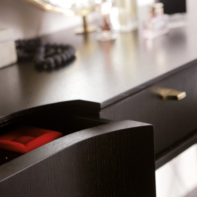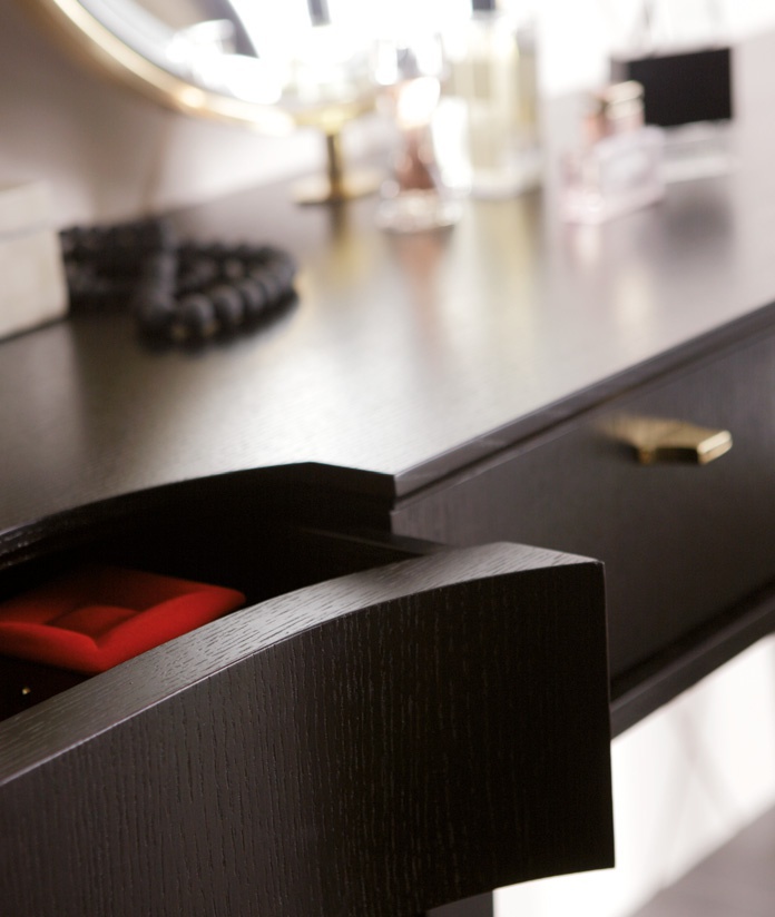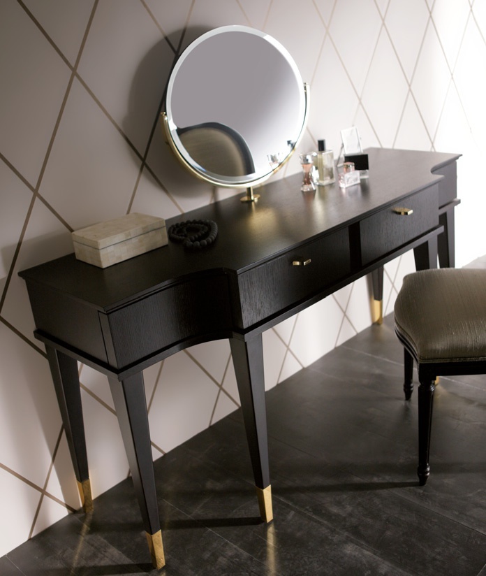 Vanity Desire from the Italian manufacturer Angelo Cappellini. The original model on six legs with metal tips. A table with sliding drawers. The housing table is made of natural wood. The color of this model table - black.