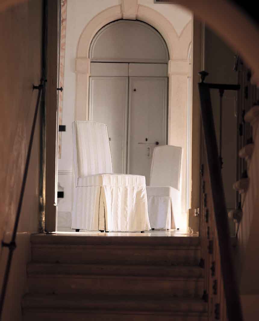 Chair with high back in Elsa white fabric Italian producer Villa Venete. Chair on wooden frame. The model is completely covered with textile. A style classic.