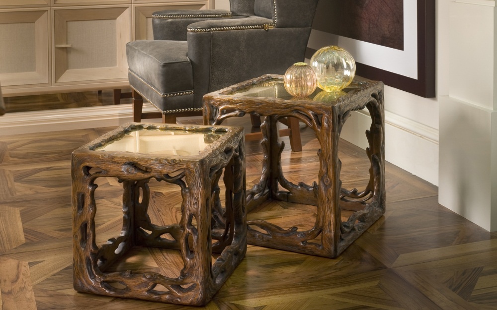Coffee table by Italian manufacturer Annibale Colombo. The model square. Material - wood. Glossy top brass. The finish offers a glossy varnish. Draws attention to the unusual design.