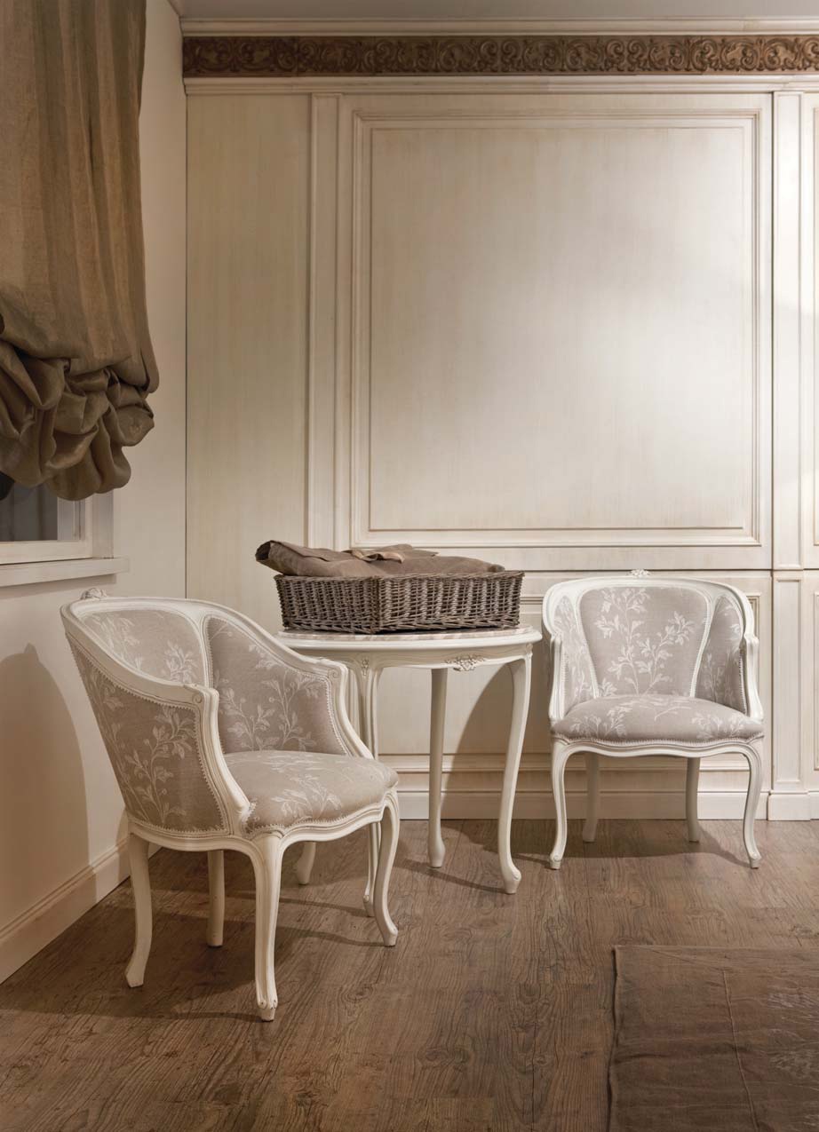 Mediterraneo chair from the Italian manufacturer Angelo Cappellini. Model with a rounded back, which fades into the armrests. Curved legs are figured. The frame is made from wood. Upholstery textiles. The varnish finish offered from the company portfolio.