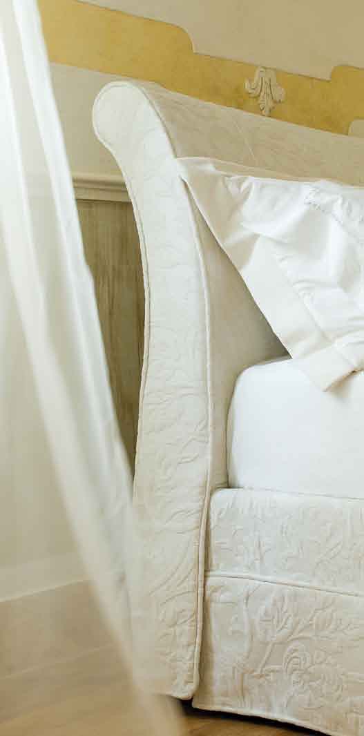 Double bed low headboard Grimaniс Italian producer Ville Veneto. Bed with low headboard and footboard wooden frame. Upholstery textiles milky color. Perfectly complement the interior in a classic style.