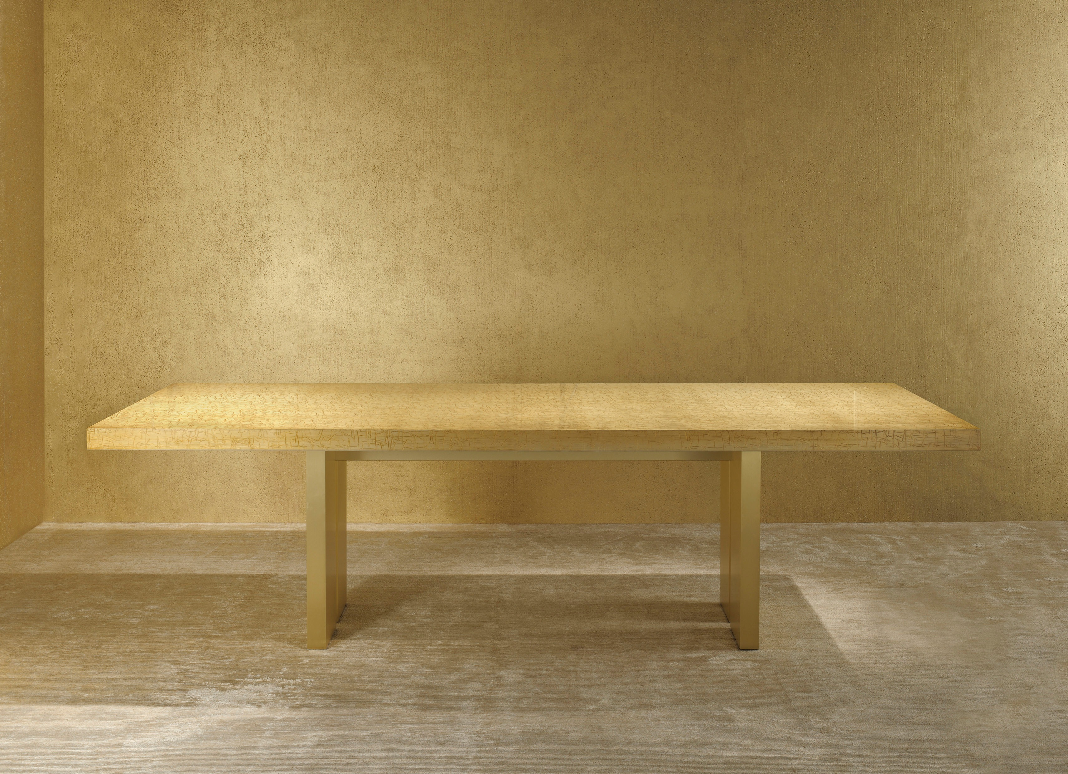 Trocadero dining table, from the Italian manufacturer Armani Casa. Presents a model of rectangular shape. The frame is made of solid mahogany, oak or metal. Tabletop from solid wood, or lacquered. Color solution in beige tone or from the manufacturer's catalogue. A great option for dining room in modern style.