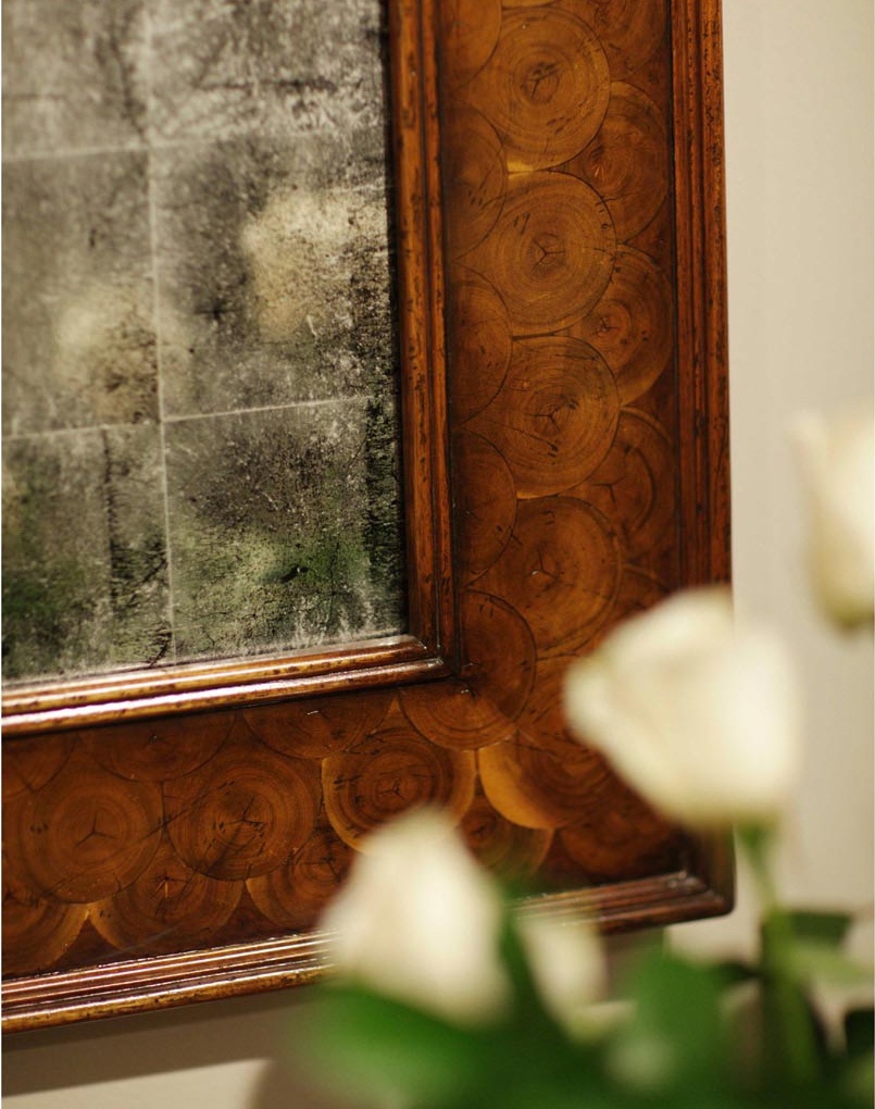 Mirror Country Farmhouse from the American manufacturer Jonathan Charles. Model wall-mounted, rectangular frame. The frame is made of wood. Finish veneer frame is made in the form of fish scales. The mirror in the Dutch style of the 17th century.