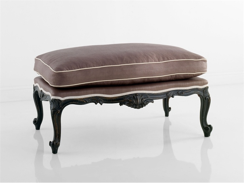 Stool from the Italian manufacturer Chelini. The frame is made from solid wood, upholstery - textiles from the company portfolio. Rests on carved feet. Gorgeous soft model for a drawing room in classical style. Colors - in stock.
