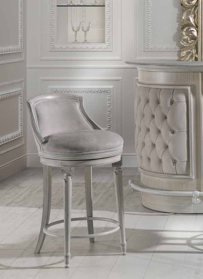 Dining room set for Vulcano from the Italian manufacturer Angelo Cappellini. Set includes a bar counter, high bar stools and a mirror. Bar counter made of natural wood and decorated with quilted leather upholstery. Bar stools with low back are made of wood, and the upholstery is available in leather. A large mirror edged with elegant Golden frame.