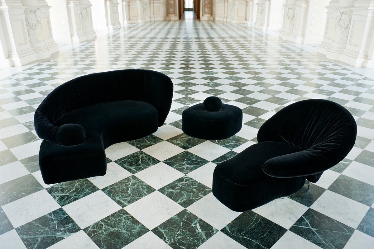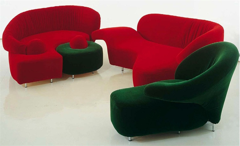 Sofa Angels from the Italian manufacturer Edra. A design model. The base is made of MDF, legs and backrest chrome, penopoliuretanovyj filler. As upholstery velvet. Sofa semicircular shape.