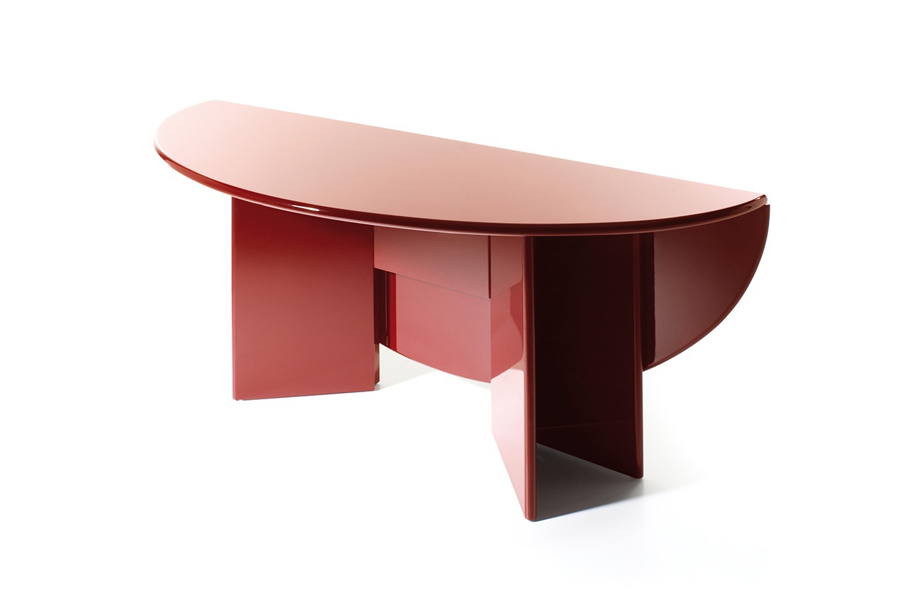 Antella table folding polyester from the Italian manufacturer Cassina. Frame lacquered in gloss or Matt. Frame and top with rounded front edge, two hinged elements held together by a magnet. The two halves of the elliptical table top panels open in full size. A lovely choice for dining room in modern style. Colours in stock.