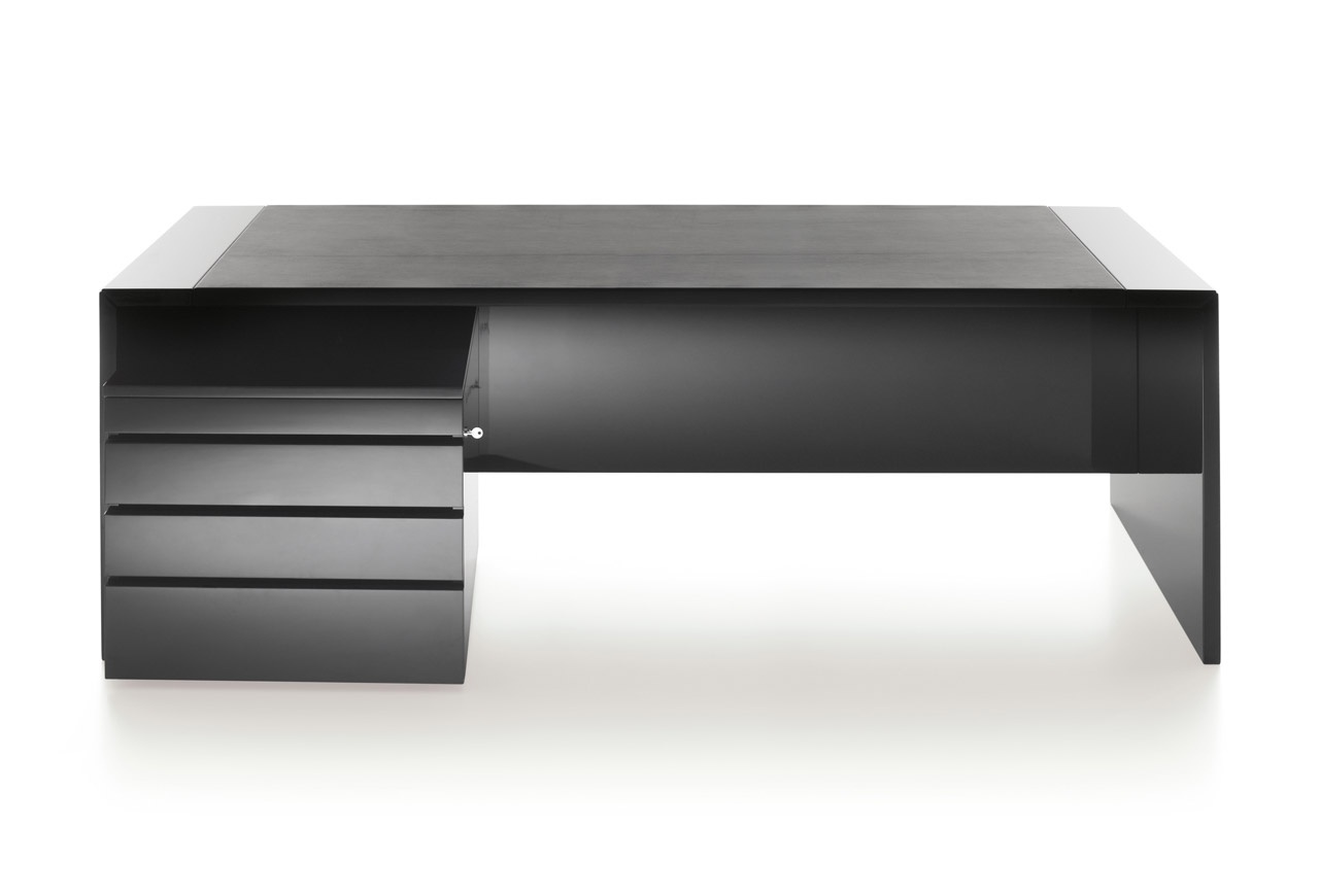 A Desk LOOP from the Italian manufacturer Cassina. Model with glossy or matte finish. The frame is made from MDF. Desk rectangular with drawers. The table-top with a leather cover. The table is manufactured in contemporary style. Is characterized by durability and functionality.
