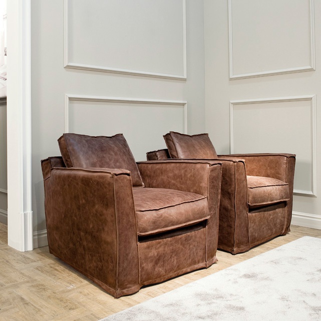 Chair square leather upholstery Keywest Italian producer Ville Venete. Model color brown. Ideal for living room or office
