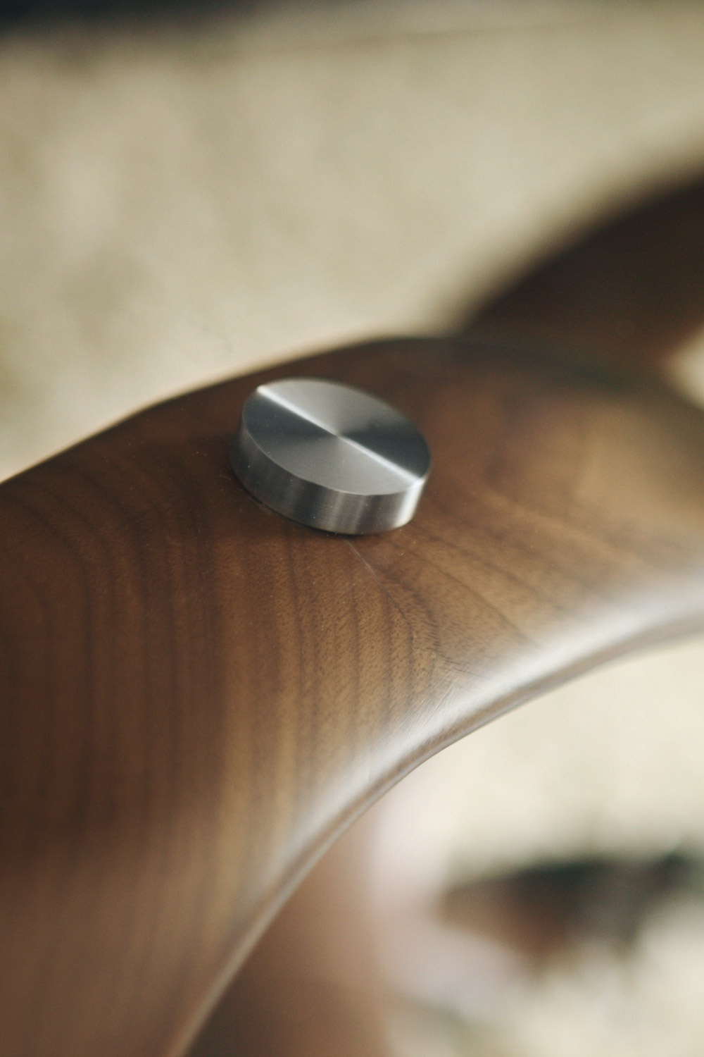 | Description: | Round coffee table with curved base made of solid walnut, is mounted on a metal plate of chromium steel. Table top made from 12 mm Tempered glass. (As pictured) |