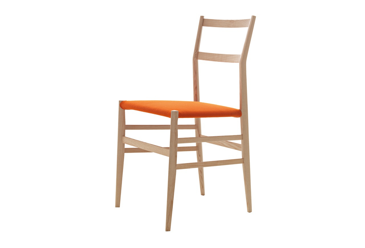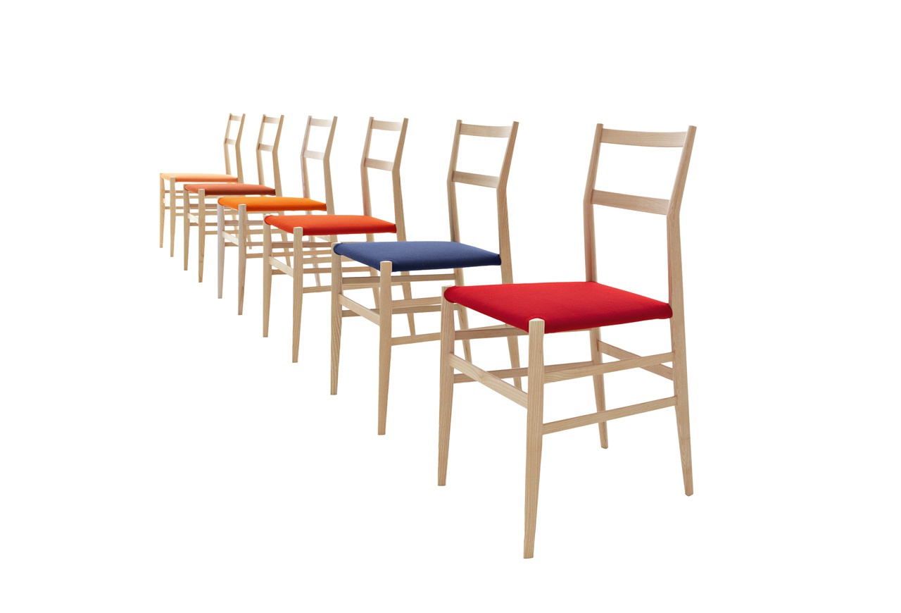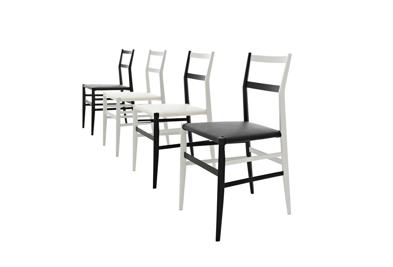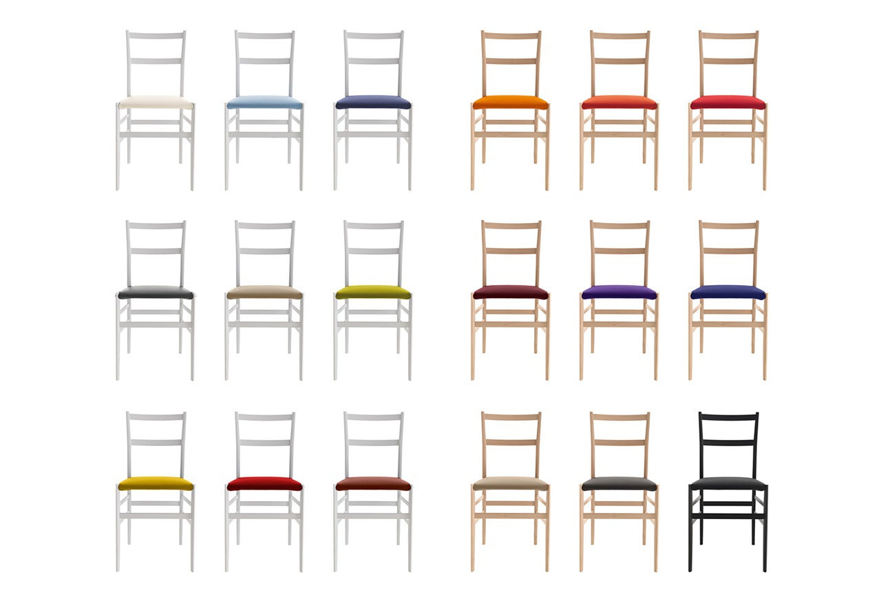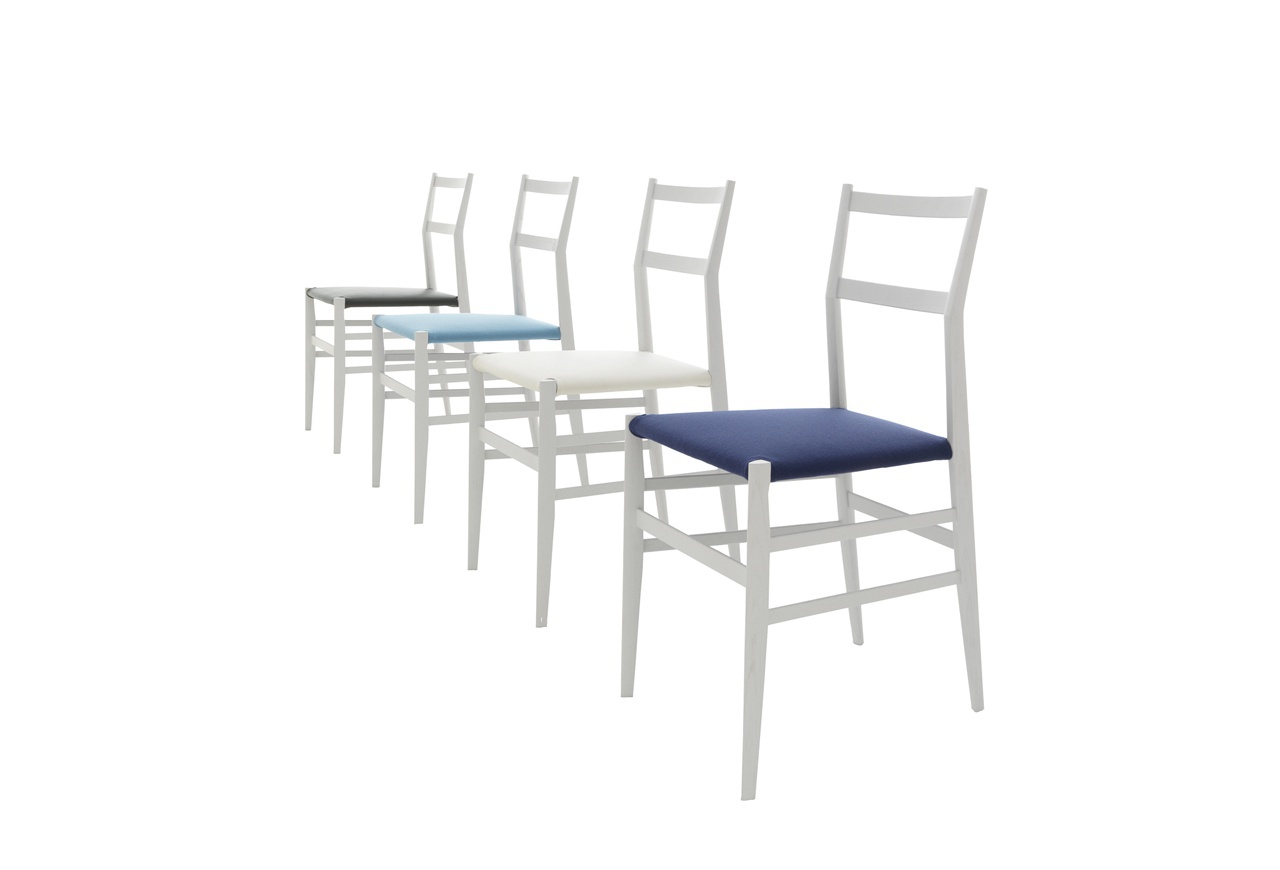 Chair 699 with cover from the Italian manufacturer Cassina. Designer Gio Ponti. The frame is made from solid ash, finished with lacquer from a range of companies. Model upholstered in leather or textile. Made in a modern style. Colours in stock.
