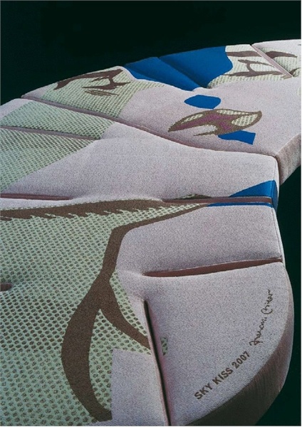 Sofa double Topolone from the Italian manufacturer Edra. The model is made in modern style. Base and frame made of solid wood. With soft upholstery and penopoliuretanom filler. Color in stock.