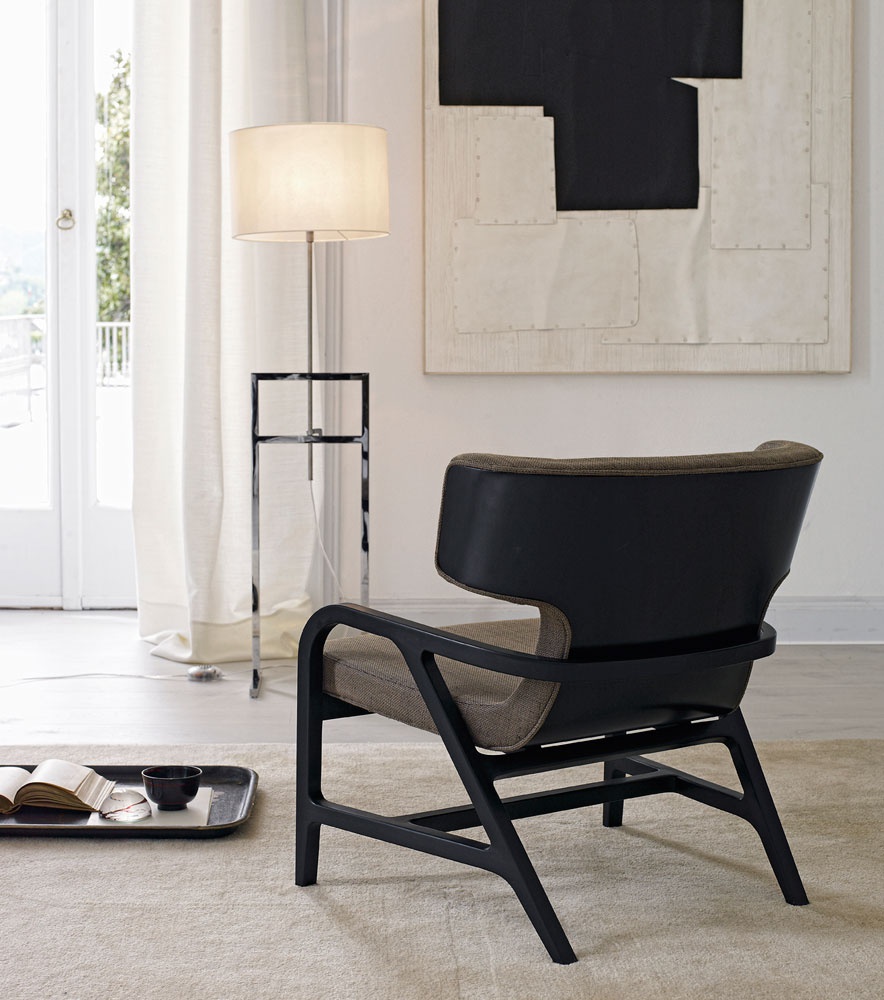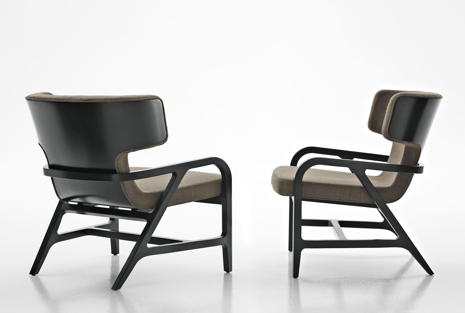 The Fulgens chair from the Italian manufacturer B&B Italia. Design Antonio Citterio. The frame is made of wood. Upholstery - leather or textile. Design model for the modern interior. Colors in stock