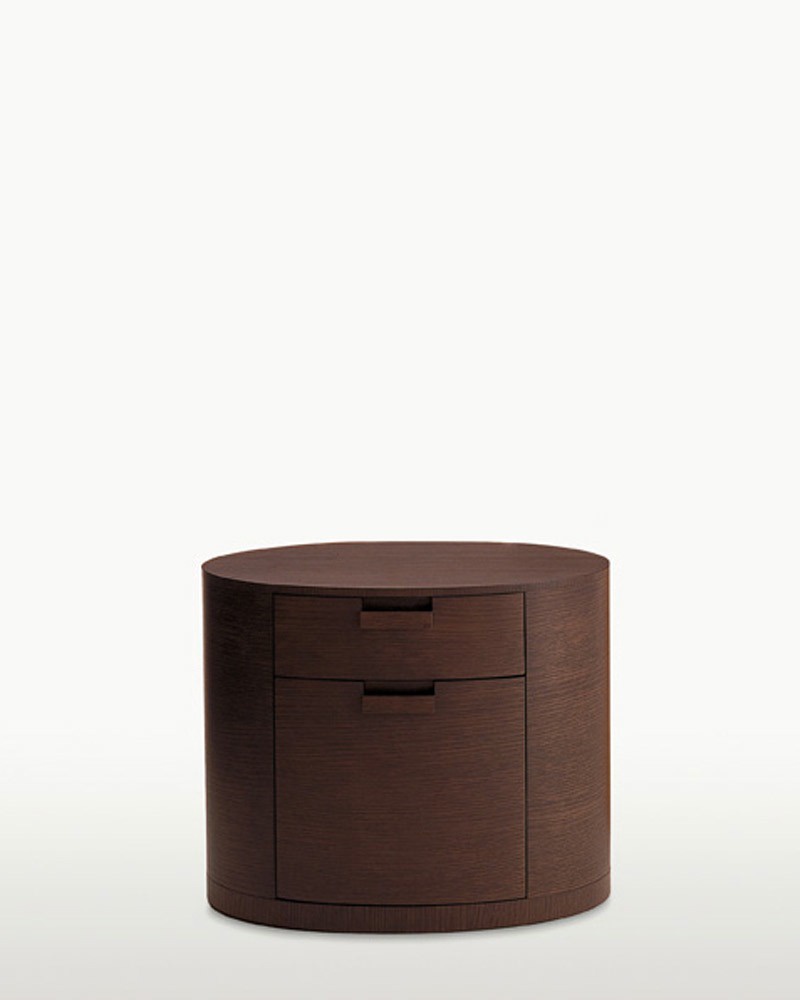 Bedside table Amphora from the Italian manufacturer B&B Italia. Design Antonio Citterio.Compact oval shape, with two drawers of different sizes. The case is made of wood and finished in oak veneer. The choice of color in stock.