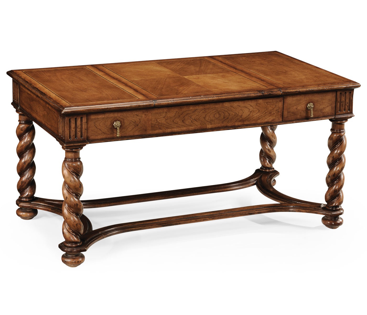 Table Windsor from the American manufacturer Jonathan Charles. An interesting model with a sliding Board for playing chess and backgammon. Chess and backgammon are attached. The case is made of natural wood and stained walnut. Legs twisted. Fittings - brass.