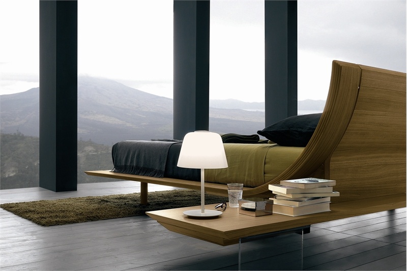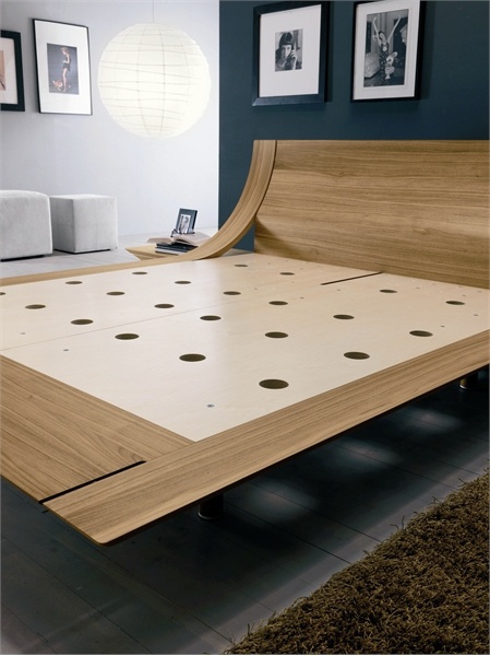 Double bed "Arc", Aqua - Presotto. Bed in art Deco style, made of natural wood. Colors according catalogue. Convenient and comfortable bed designed for daily use.