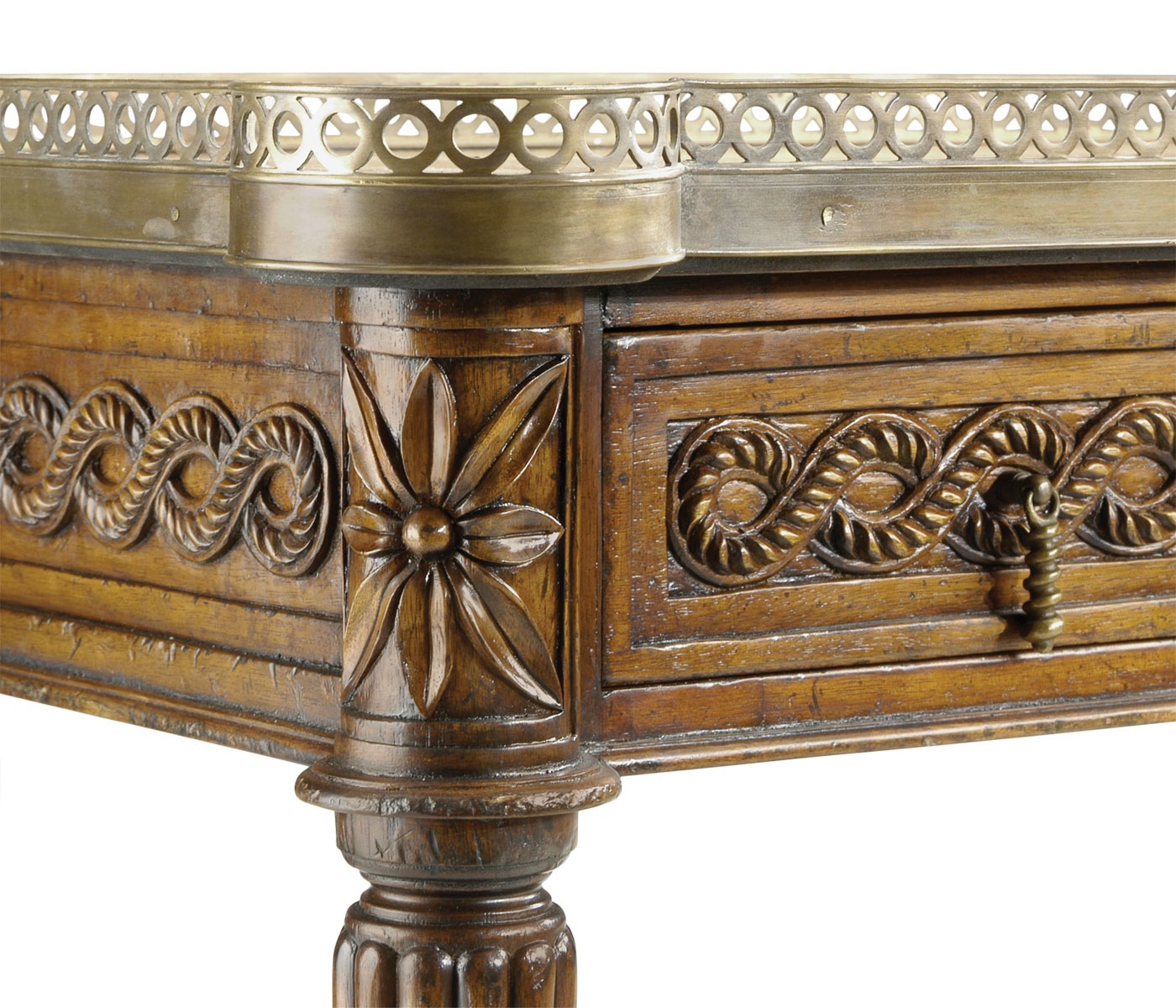 Console Napoleon III from the American manufacturer Jonathan Charles. Model on high legs with drawers and shelf. The frame is made of wood and decorated with very beautiful carvings. Fittings are made of brass.