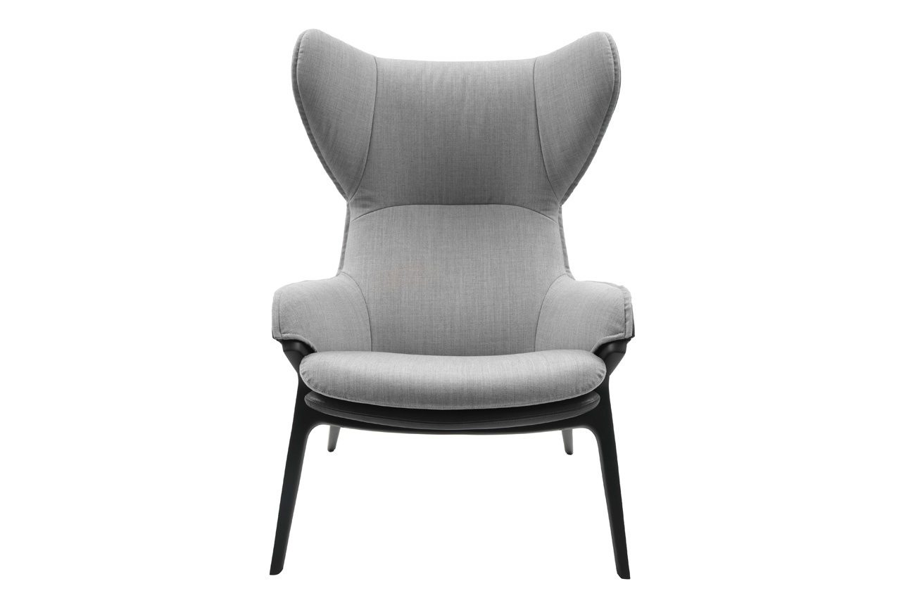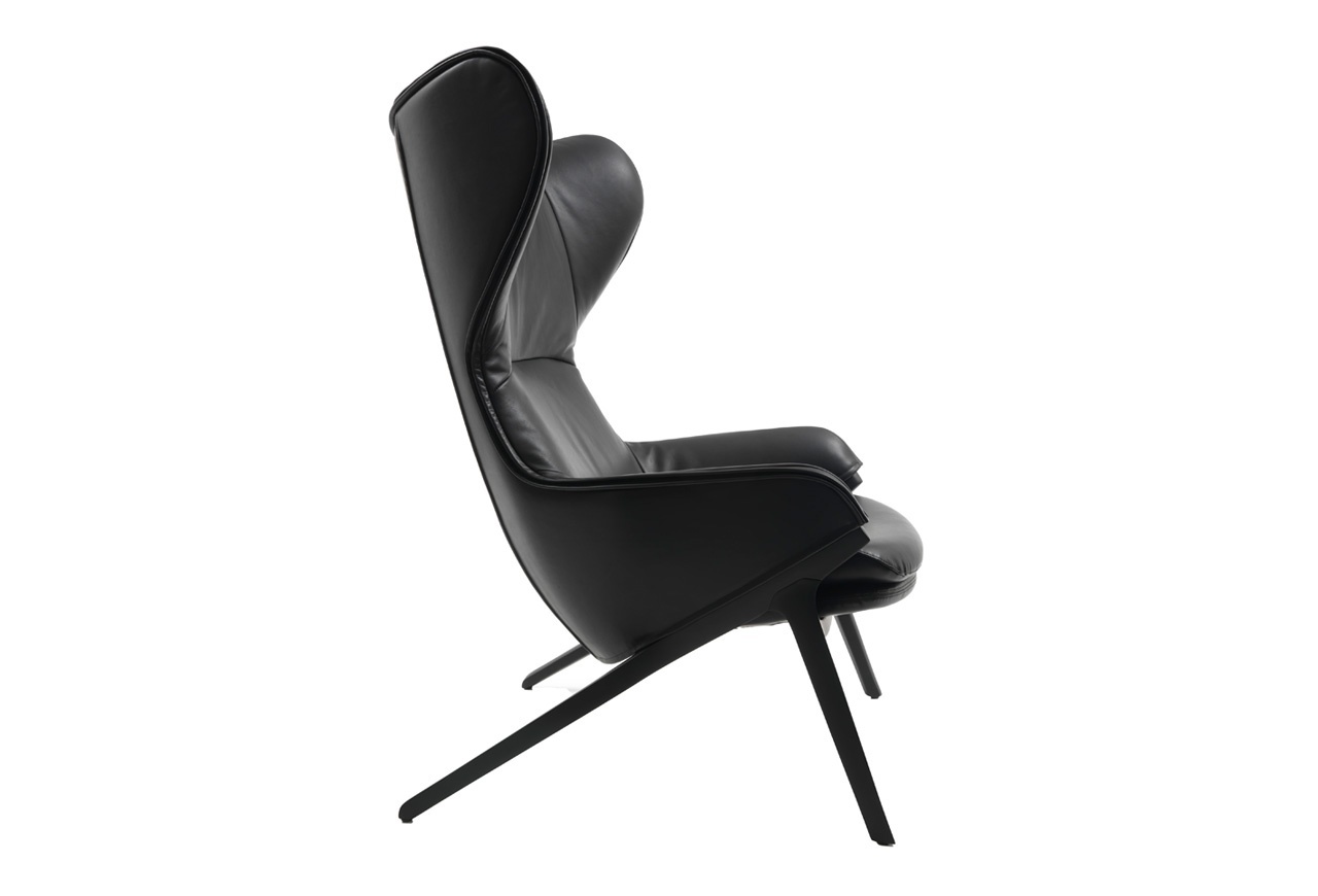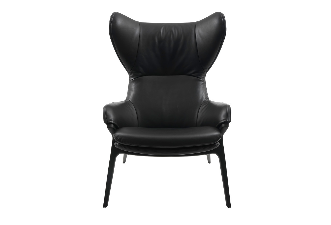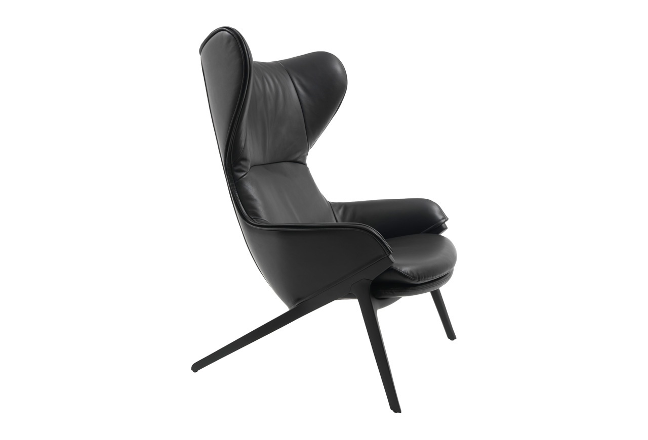 The high-backed chair P22 from the Italian manufacturer Cassina. Pleasant Union of comfort and tradition. Steel frame and elastic belts. Frame made of polished aluminum alloy. Legs made from solid wood painted in matte black, chestnut brown or beige-grey. The upholstery is leather or textile. There is a zip sewn into the fabric or leather upholstery making it easily removable. Filler - polyurethane foam. The modern design.