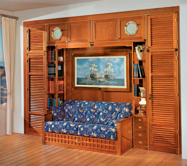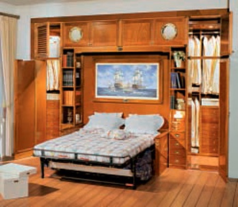 Set for the bedroom Maria Vecchia, an Italian manufacturer of Caroti. The furniture is made on a frame of natural mahogany. Sofa bed built-in niche Cabinet, upholstery - fabric to be selected from the manufacturer's catalogue. Dressing room has lots of compartments for storage. A great option for bedrooms in classic style with sea motifs.