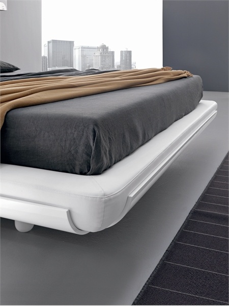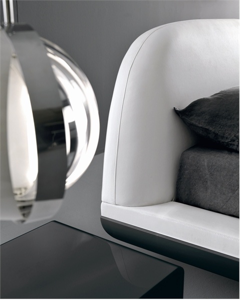 Double bed on straight legs of circular cross section, Fusion Presotto, lacquered surface. As the upholstery is used the leather. Model fusion, product color - white.