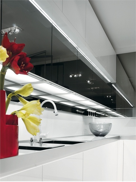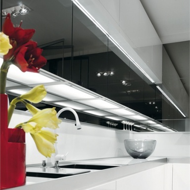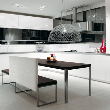 Kitchen Longline from Salvarani Italian manufacturer. The model is made in modern style. The frame is made of MDF, the facade was decorated spanam and stainless steel. Countertop made of artificial stone. Behind the apparent modesty - the original decision of the designer and the functionality of the kitchen.