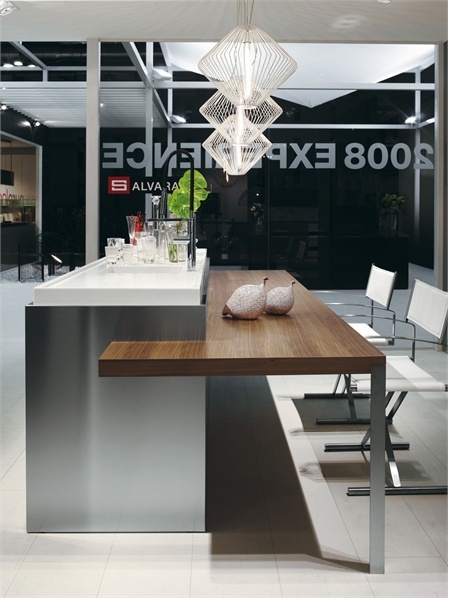 Kitchen Longline from Salvarani Italian manufacturer. The model is made in modern style. The frame is made of MDF, the facade was decorated spanam and stainless steel. Countertop made of artificial stone. Longline harmonizes the interior and symbolizes the time-tested functionality of minimalism.