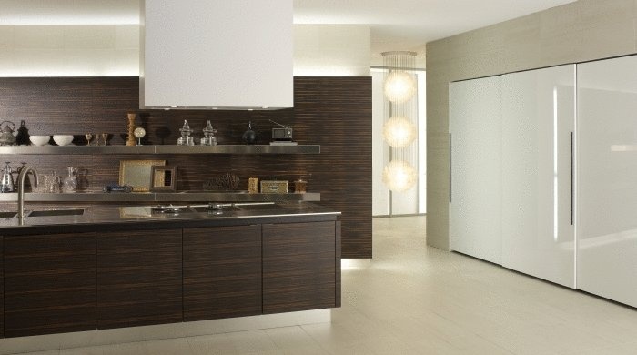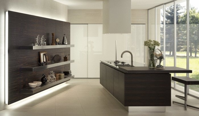 Kitchen High teak from the Italian manufacturer Salvarani. The model is made in modern style. The frame is made of MDF, finished with keyway, metal frame, the surface is lacquered and brushed. The elegant austerity and restraint to read in each line.