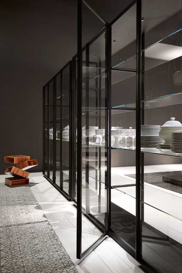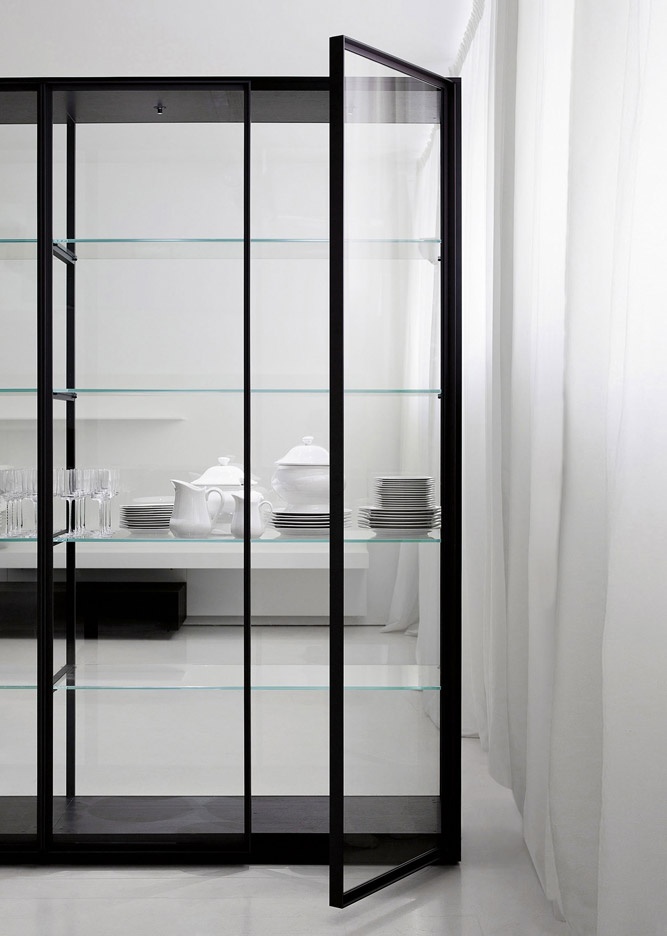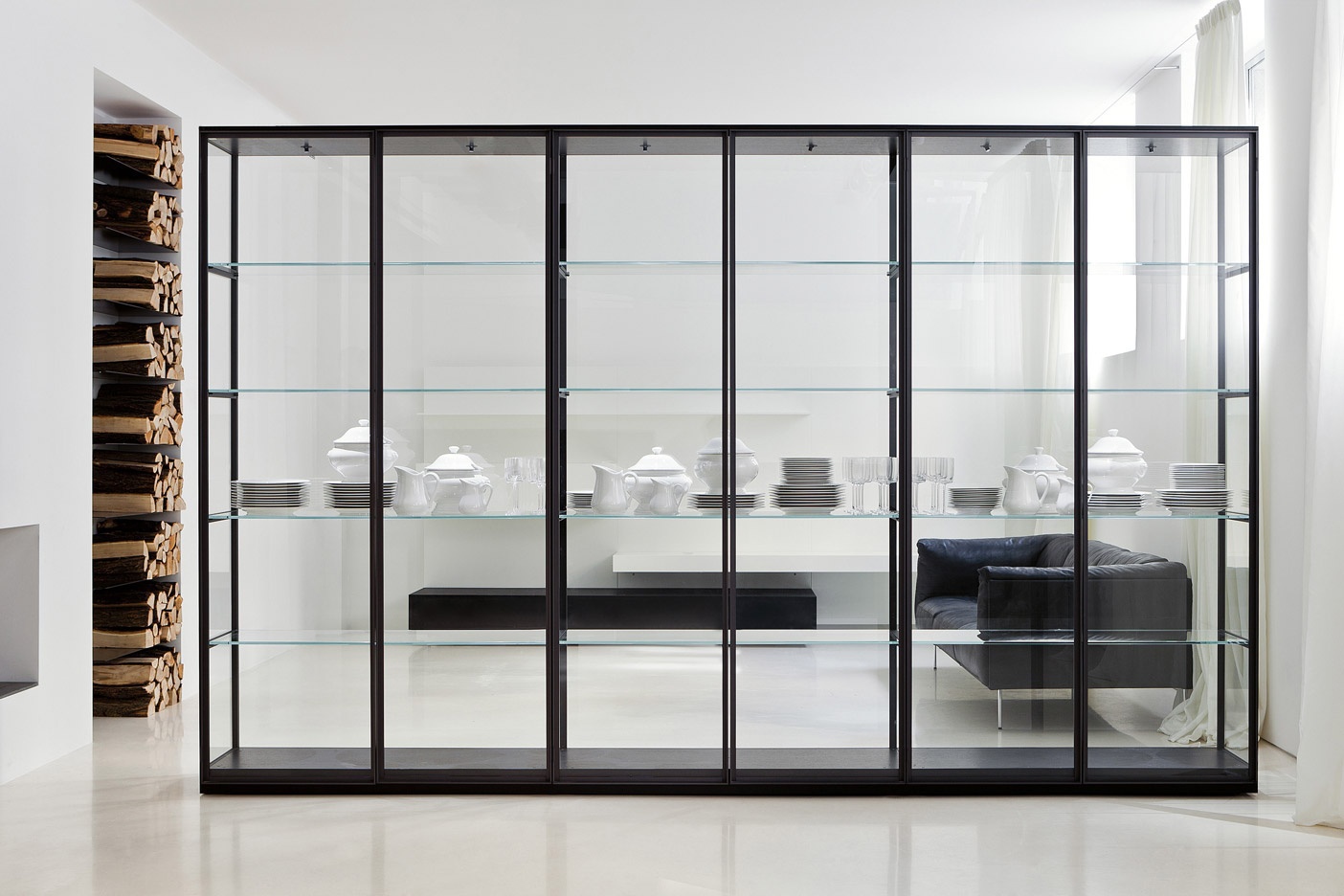 A showcase for ware EX-LIBRIS from the Italian manufacturer Porro. The frame is made of metal. Panels and shelves - tempered glass. The model is made in modern style. Colours in stock.