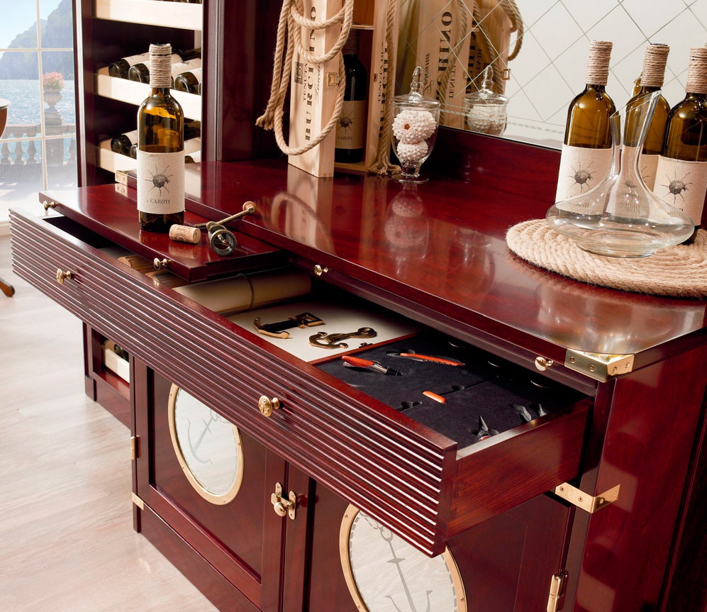 and has 8 hanging sections for glasses. Set in the Maritime style will perfectly fit into the interior of your dining room, living room or bar.