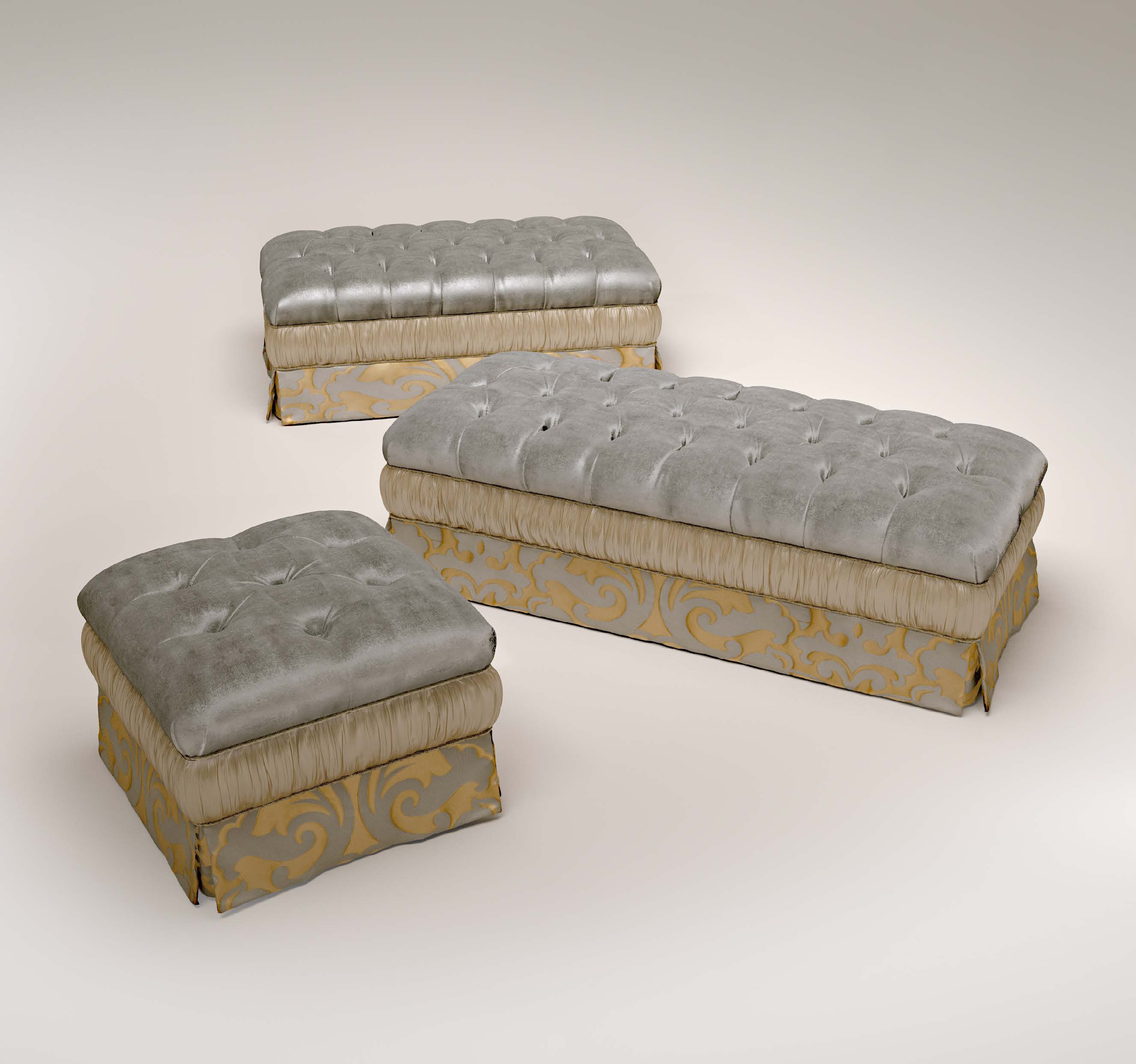 Pouf Capitonne from the Italian manufacturer Bruno Zampa. Hidden frame is made from solid wood. Upholstery textile from the company portfolio. The decor complements the screed Capito. The filler is a polyurethane. Colours in stock.