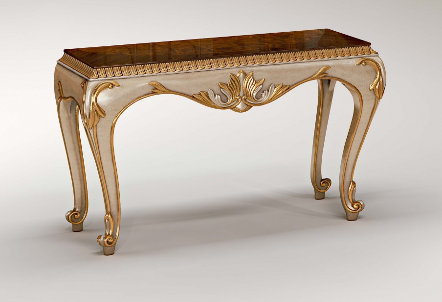 frame: solid wood decorative elementi: gilding legs, worktop: carved countertop: inlay |