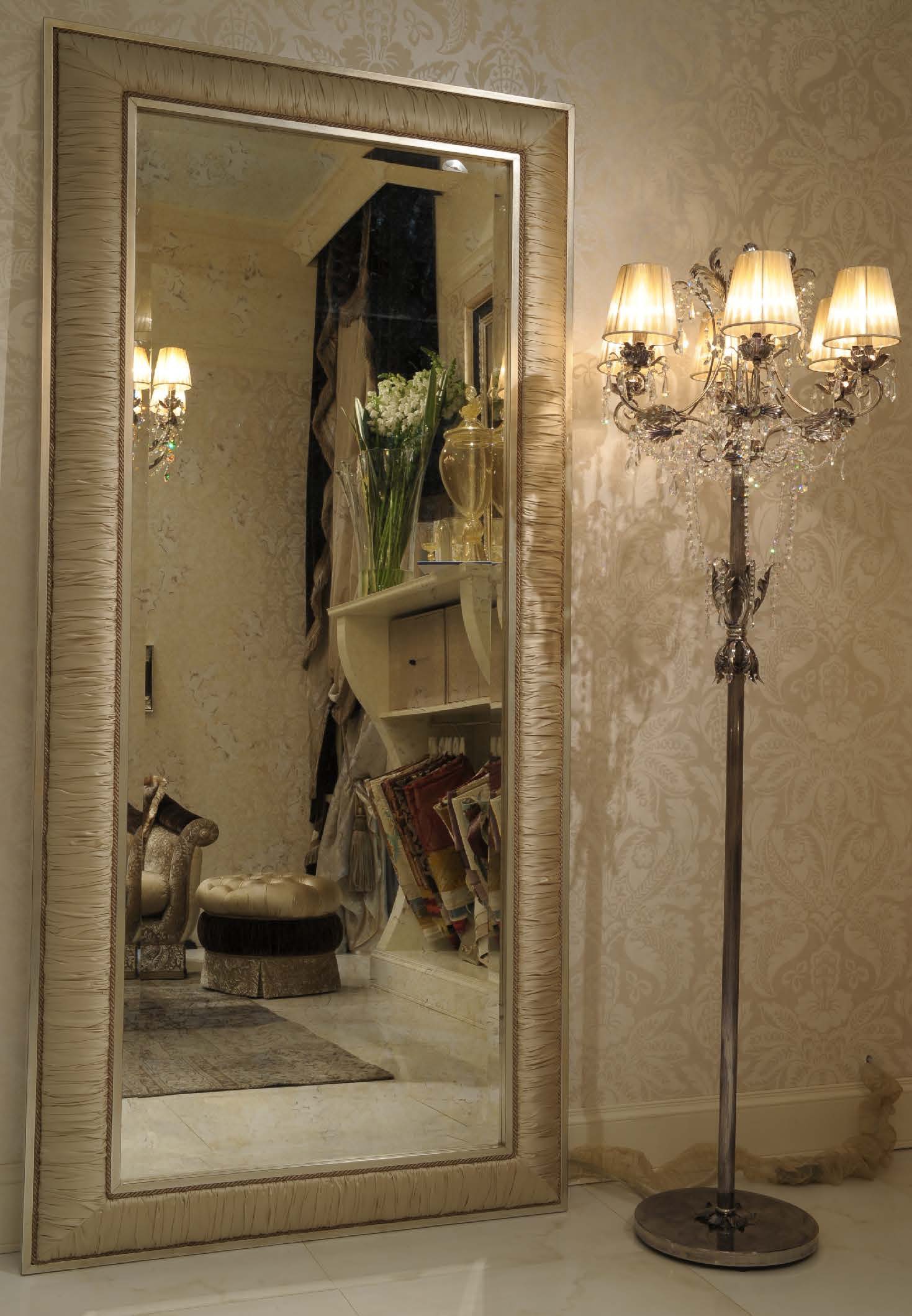Rectangular wall mirror Passepartout from the Italian manufacturer Bruno Zampa. The mirror in art Deco style, the frame is made of solid wood, decorated with pleated fabric. Decorative elements of handwork. Finishing - gilding.