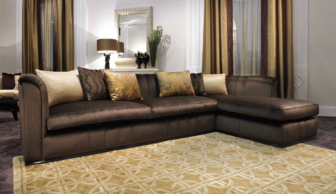 Gordon corner sofa from Italian manufacturer Bruno Zampa. The model with the folding mechanism. The frame is made of solid wood, upholstery and textiles. The seat cushion and backrest: Pooh and insert made of polyurethane. Colours in stock.
