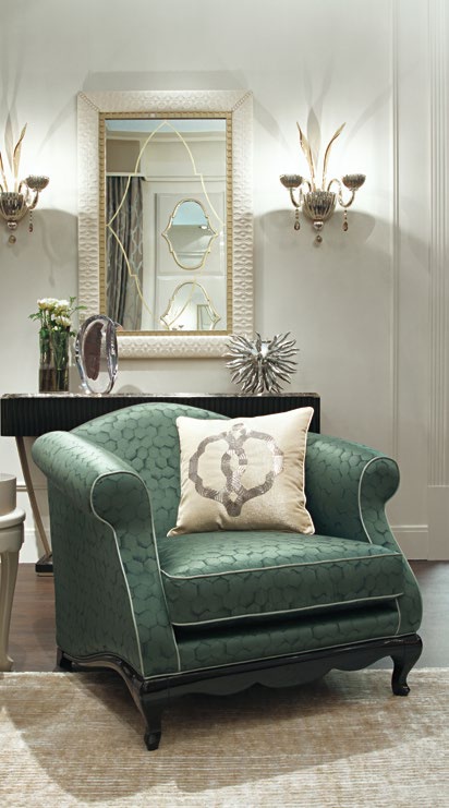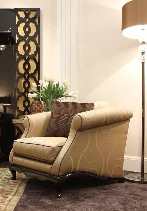 The Fly chair from the Italian manufacturer Bruno Zampa. The frame is made from solid wood. Upholstery textiles, furniture decorated with carnations. Filler: down and insert in polyurethane. Colours in stock.