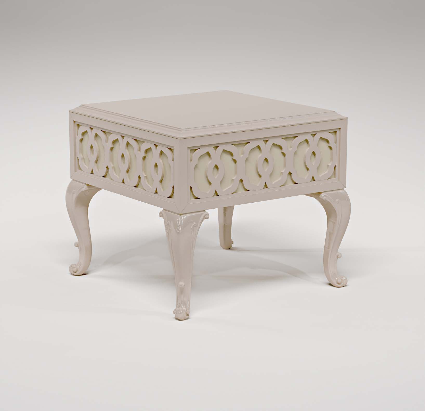 Club coffee table from the Italian manufacturer Bruno Zampa. The Avantgarde Collection. The model is made from solid wood, decorated with handmade carving. Finishing varnish from the company portfolio. Colours in stock.