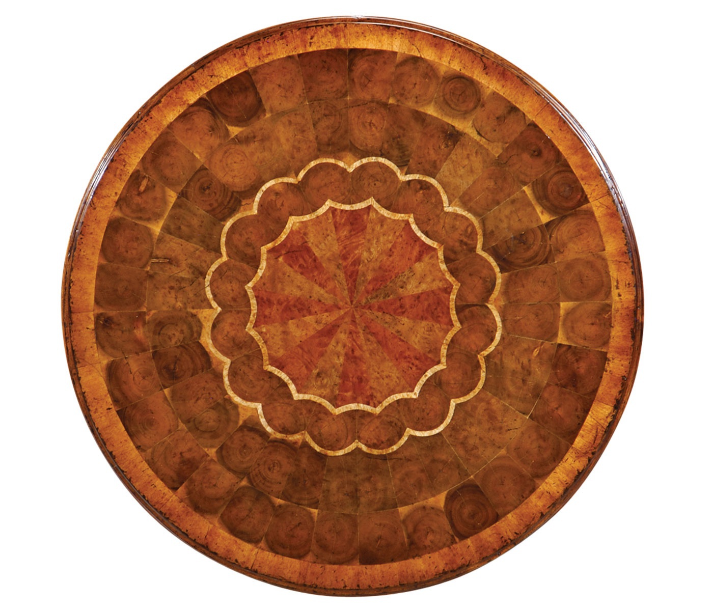 countertop: wood legs: wood accessories: brass countertop: marquetry (wooden mosaic) accessories: patina |
